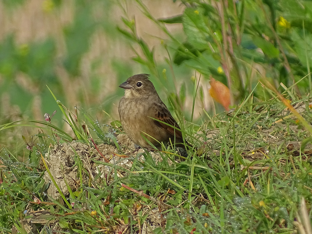 It was a field where they used to cultivate mustard. There were a few abandoned fields as well. In some areas, they cultivated other crops. While searching for a blue-throat, I suddenly saw a small bird hopping on the ground. It was so small that it was difficult to observe clearly. At first, I thought it was a blue-throat, but then I noticed the missing throat band. Suddenly, it noticed me and raised its crest. That’s when I recognized it as a female crested bunting. I was worried that if it flew away, I wouldn’t be able to find it again, so I crawled and tried to approach it. It was about 20 feet away from me and kept moving further as I tried to get closer. However, it didn’t fly away since it wasn’t disturbed or scared. While foraging, it didn’t stay in one place and kept moving around. These were the pictures I managed to capture that day. I was happy to spot a lifer, even though at the time, the concept of a lifer was very new to me—I didn’t even know what it meant.