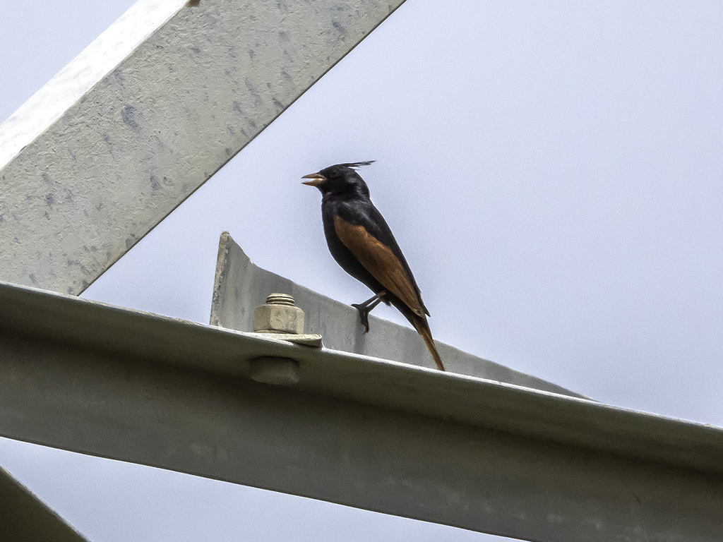 The male Crested Bunting is one of the most beautiful buntings found in India and can be easily distinguished by its plumage. It is also the only bunting with a crest on its head. During the monsoon, people visit Saswad and the western parts of India to photograph this stunning bird. Although it occasionally visits other regions in India, especially plateau areas, its presence there is not always guaranteed. This monsoon, during our Saswad-Bhigwan trip, we specifically targeted this species in the foothills of Saswad. We were fortunate to spot both male and female Crested Buntings on wires, perches, and even high extension towers at times. Thanks to the sunny weather, we were able to observe its glossy feathers and even saw it chirping occasionally to call its mate. It was truly an amazing experience to witness this beautiful bird.