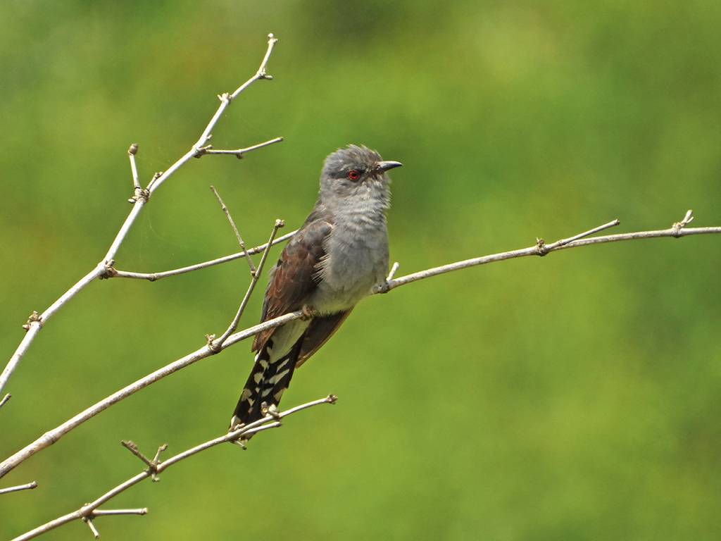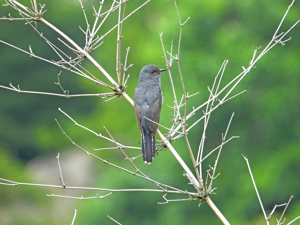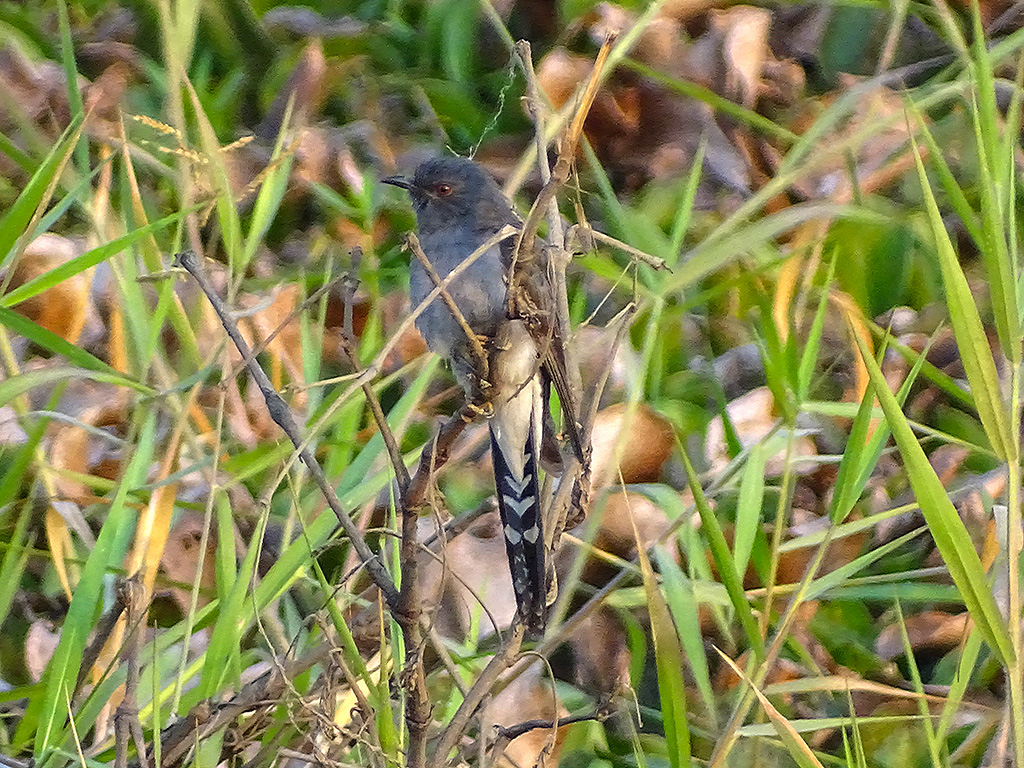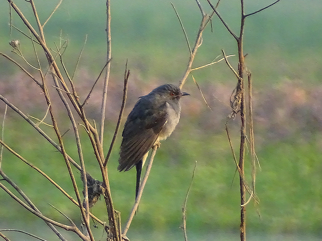 A very common cuckoo is found throughout Karnataka, but I am unfortunate not to encounter it very frequently. I mean, I could have had more records than I currently do. Anyway, it is a beautiful, greyish male bird with red eyes, mostly found in hilly jungles or near lakes because it primarily feeds on caterpillars found in such areas. It is usually identified by its distinct and loud calls echoing through its habitat.